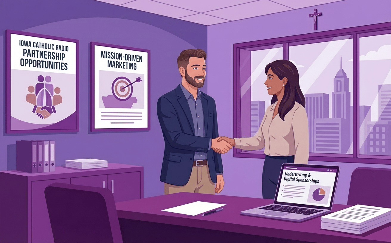 Iowa Catholic Radio Network continues to experience growth in our Supporters, and requires a MISSION-DRIVEN Account Executive who is a dynamic and faith-filled leader who is focused on spreading the gospel of Jesus Christ through our apostolate. The Account Executive is responsible for growing Iowa Catholic Radio Network’s Underwriting, sponsorship and digital marketing revenue by cultivating, selling, and Managing Relationships with business and nonprofit supporters.