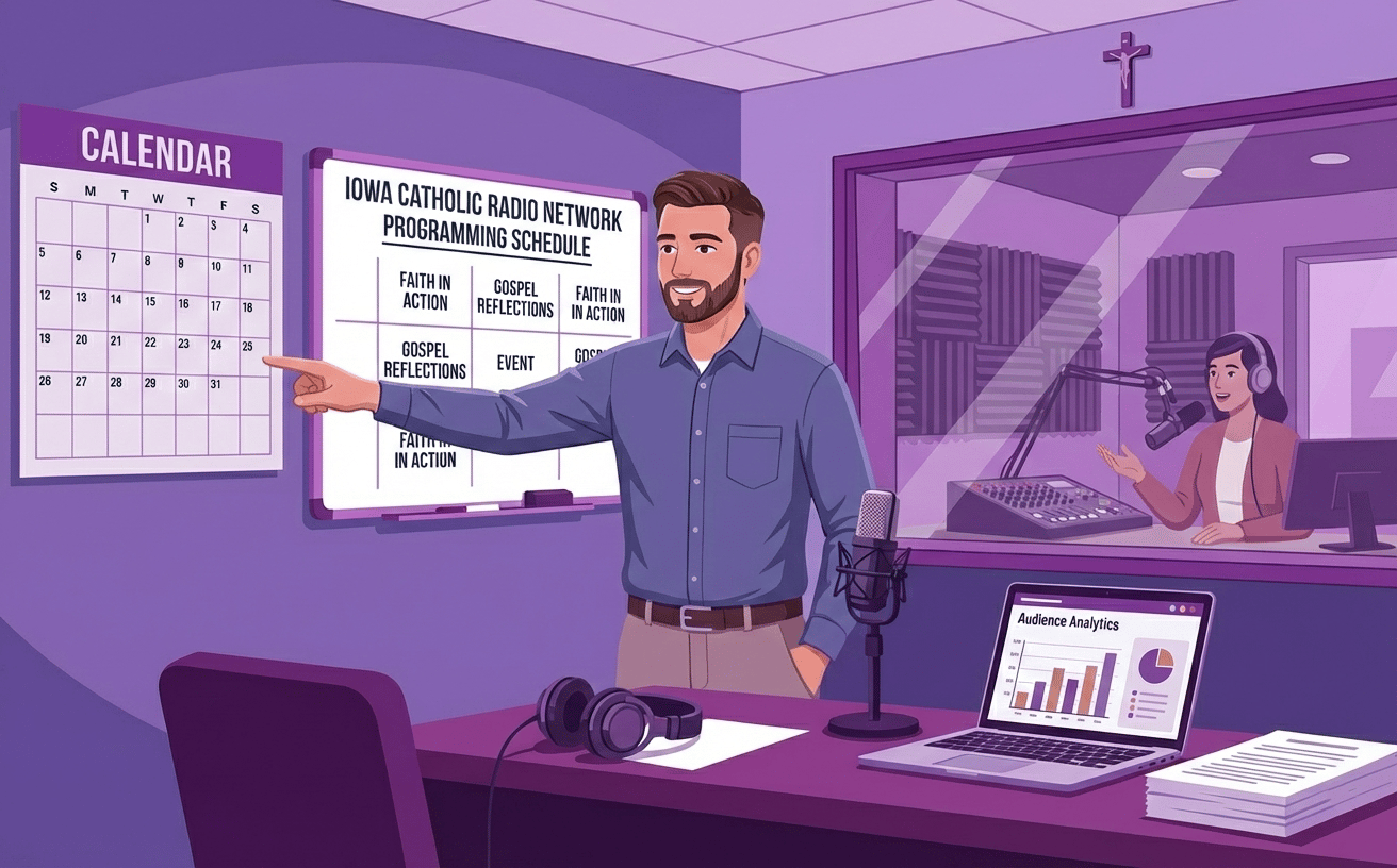 Iowa Catholic Radio Network continues to experience growth in our listenership, and requires a MISSION-DRIVEN Program Director who is a dynamic and faith-filled leader who is focused on spreading the gospel of Jesus Christ through our apostolate. The Program Director will lead programming strategy, oversee on-air talent, and ensure High-Quality Catholic broadcast content across radio and digital platforms.